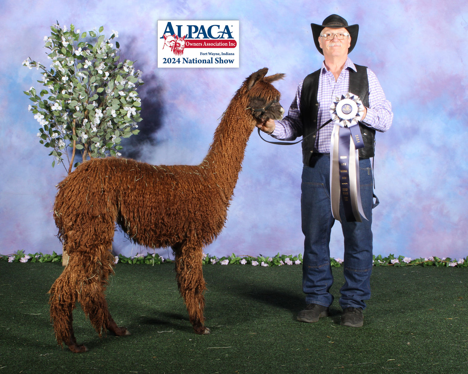We're very pleased with Zeus! He has great confirmation, exceptional luster, and dense uniform fleece. Zeus has it all! His sire, Commandor's Defender of WAP (35139164), has a steller show record taking two color champions, four reserve champions, and nine first places at some of the largest shows in the country. Additionally, his dam, Calista of Ouroboros (35077787), has an equally impressive show record of the 2018 AOA National Color Champion and Judge's Choice winner.